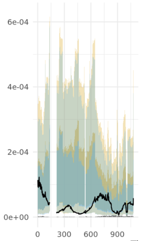 Here’s an example of poor parameter recovery for a small channel. Comfortingly, the actuals do fall within the prior. Not so comfortingly, the posterior is basically exactly the same as the prior.