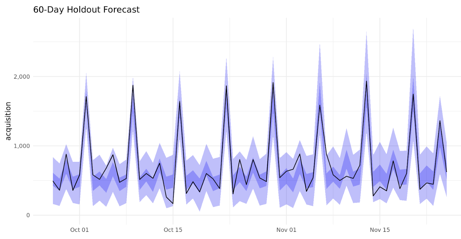 It is a “true” holdout so we ensure that the model can’t see any of the future data during the training process (unlike some other open source tools that allow the model to “cheat” when they estimate the seasonality component of the model)