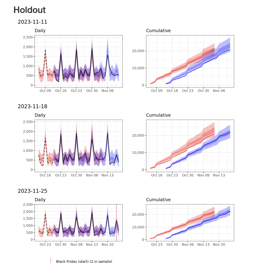 However, the daily holdouts can be very useful for diagnosing why the cumulative checks might be missing. For example: