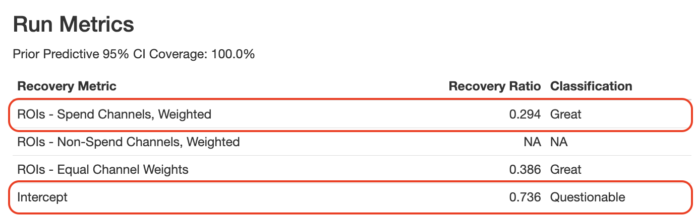 Small channels making up <5% of the overall marketing budget often present difficulties in recovery because they simply don’t have a large enough impact on the KPI for the model to consistently identify their effects.